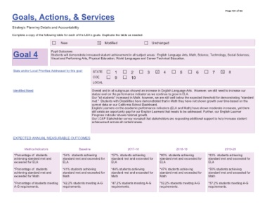 *RDO                ,GHQWLILHG 1HHG                    0HWULFV ,QGLFDWRUV    3HUFHQWDJH RI  VWXGHQWV  DFKLHYLQJ VWDQGDUG PHW DQG   H[FHHGHG IRU (/$    3HUFHQWDJH RI  VWXGHQWV  DFKLHYLQJ VWDQGDUG PHW DQG   H[FHHGHG IRU 0DWK    3HUFHQWDJH RI VWXGHQWV PHHWLQJ   $ * UHTXLUHPHQWV