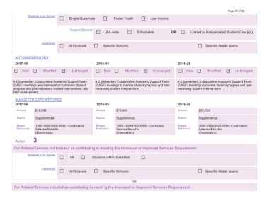 6WXGHQWV WR EH 6HUYHG   /RFDWLRQ V    $&7,216 6(59,&(6                           1HZ                  &$67  PHHWLQJV DUH LPSOHPHQWHG WR PRQLWRU VWXGHQW   VWDII GHYHORSPHQW                %8'*(7(' (;3(1',785(6                        $PRXQW                    6XSSOHPHQWDO  6RXUFH          %XGJHW   5HIHUHQFH        6DODULHV %HQHILWV    (OHPHQWDU\          $FWLRQ          6WXGHQWV WR EH 6HUYHG   /RFDWLRQ V
