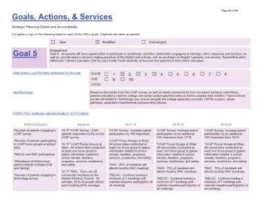 /&$3 6XUYH\ ,QFUHDVH SDUHQW SDUWLFLSDWLRQ E\ DQ DGGLWLRQDO /&$3 )RFXV *URXSV DW 6LWHV $OO VFKRRO VLWHV FRQGXFWHG DW OHDVW RQH IRFXV JURXS WR JDWKHU LQIRUPDWLRQ UHODWHG WR VFKRRO VHUYLFHV DFDGHPLFV DQG VDIHW\ '$& RI PHPEHUV ZLOO DWWHQG PRQWKO\ '$& PHHWLQJV '(/$& &RQWLQXH KRVWLQJ D