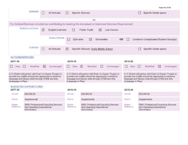 /RFDWLRQ V 6WXGHQWV WR EH 6HUYHG /RFDWLRQ V $&7,216 6(59,&(6 0RGLILHG 'LVWULFW ZLOO SDUWQHU ZLWK (DVW /$ &ODVVLF 7KHDWHU WR SURYLGH WZR PLGGOH VFKRROV WKH RSSRUWXQLW\ WR UHLQIRUFH ODQJXDJH DQG OLWHUDF\ VNLOOV WKURXJK 67(0 DQG $UWV %8'*(7(' (;3(1',785(6 6XSSOHPHQWDO 6HFRQGDU\