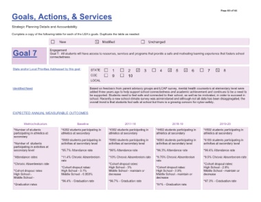 *RDO ,GHQWLILHG 1HHG 0HWULFV ,QGLFDWRUV 1XPEHU RI VWXGHQWV SDUWLFLSDWLQJ LQ DWKOHWLFV DW VHFRQGDU\ 1XPEHU RI VWXGHQWV SDUWLFLSDWLQJ LQ DFWLYLWLHV DW VHFRQGDU\ OHYHO $WWHQGDQFH UDWHV &KURQLF $EVHQWHHLVP UDWH &RKRUW GURSRXW UDWHV +LJK 6FKRRO 0LGGOH 6FKRRO *UDGXDWLRQ UDWHV