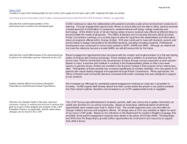 DW ULVN VWXGHQWV :H LQFUHDVHG RXU RIIHULQJV IRU FHQWUDOL]HG SDUHQW HQJDJHPHQW PRGXOHV VR FRVWV DUH LQ SURSRUWLRQ WR LQWR WKHLU FXUUHQW URXWLQHV WKHUHIRUH FRVW LQFUHDVHV WR RXU /&)) VXSSOHPHQWDO IXQGV LV QHJOLJLEOH QHHGV DQG SULRULWLHV IRU RXU VFKRRO FRPPXQLW\ %DVHG RQ UHVSRQVHV DGGLWLRQDO SDUHQW LQYROYHPHQW RSSRUWXQLWLHV ZHUH FUHDWHG VHH *RDO $FWLRQ D 7KH RYHUDOO UHVSRQVHV ZHUH YHU\ IDYRUDEOH IRU