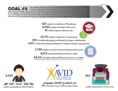 GOAL #3 All students will have access to 21st century courses and programs that enhance college and career opportunities, such as Advancement via Individual Determination (AVID), Online Courses (including Accelerated Math Pathway), Expository Reading Writing Course (ERWC), Advanced Placement (AP), College Board approved A-G courses, Career Technical Education (CTE) resour