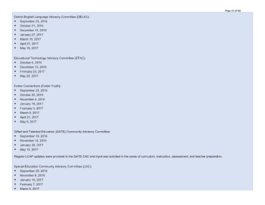 6HSWHPEHU 'LVWULFW (QJOLVK /DQJXDJH $GYLVRU\ &RPPLWWHH '(/$& 2FWREHU 'HFHPEHU -DQXDU\ 0DUFK $SULO 0D\ (GXFDWLRQDO 7HFKQRORJ\ $GYLVRU\ &RPPLWWHH (7$& 2FWREHU 'HFHPEHU )HEUXDU\ 0D\ )RVWHU &RQQHFWLRQV )RVWHU <RXWK 6HSWHPEHU 2FWREHU 1RYHPEHU -DQXDU\ )HEUXDU\ 0DUFK $SULO
