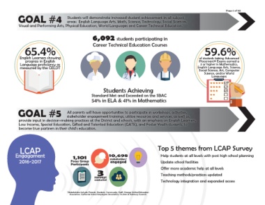 GOAL #4 65.4% English Learners showing progress in English Language proficiency as measured by the CELDT GOAL #5 become true partners in their child's education. LCAP Engagament 2016-2017