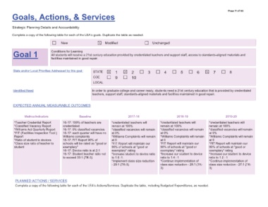 *RDO ,GHQWLILHG 1HHG 0HWULFV ,QGLFDWRUV 7HDFKHU &UHGHQWLDO 5HSRUW &ODVVLILHG 9DFDQF\ 5HSRUW :LOOLDPV $FW 4XDUWHUO\ 5HSRUW ),7 )DFLOLWLHV ,QVSHFWLRQ 7RRO 5DWLR RI VWXGHQW WR GHYLFHV &ODVV VL]H UDWLR RI WHDFKHU WR VWXGHQW