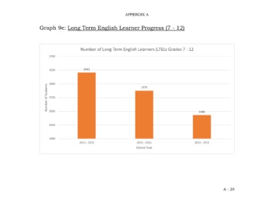 APPENDIX A Graph 9e: Long Term English Learner Progress (7 - 12) Number of Long Term English Learners (LTELs Grades 7 - 12 1700 1650 1641 1600 1575 Number of Students 1550 1500 1450 1486 1400 2012 - 2013 2013 - 2014 2014 - 2015 School Year A - 20