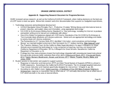 of LCFF funds to meet our goals. Below lists research and other documentation that supports our budgeted expenditures.