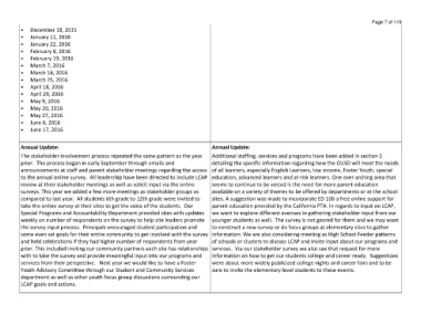 to the annual online survey. All leadership have been directed to include LCAP education, advanced learners and at-risk learners. One over arching area that