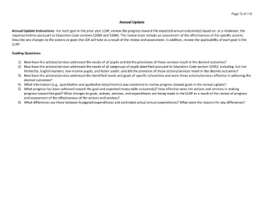 required metrics pursuant to Education Code sections 52060 and 52066. The review must include an assessment of the effectiveness of the specific actions.