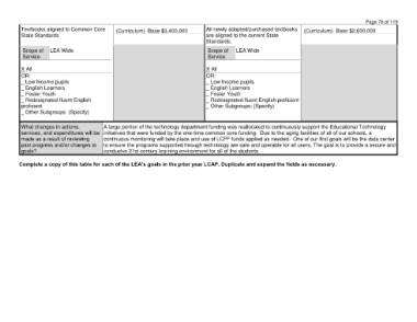 made as a result of reviewing continuous monitoring will take place and use of LCFF funds applied as needed. One of our first goals will be the data center