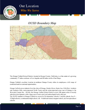 Orange Unified serves students from the cities of Orange, Garden Grove, Santa Ana, Villa Park, Anaheim
