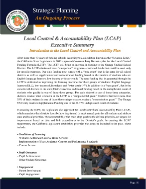 Funding Formula (LCFF). The LCFF will bring an increase in funding to the Orange Unified School