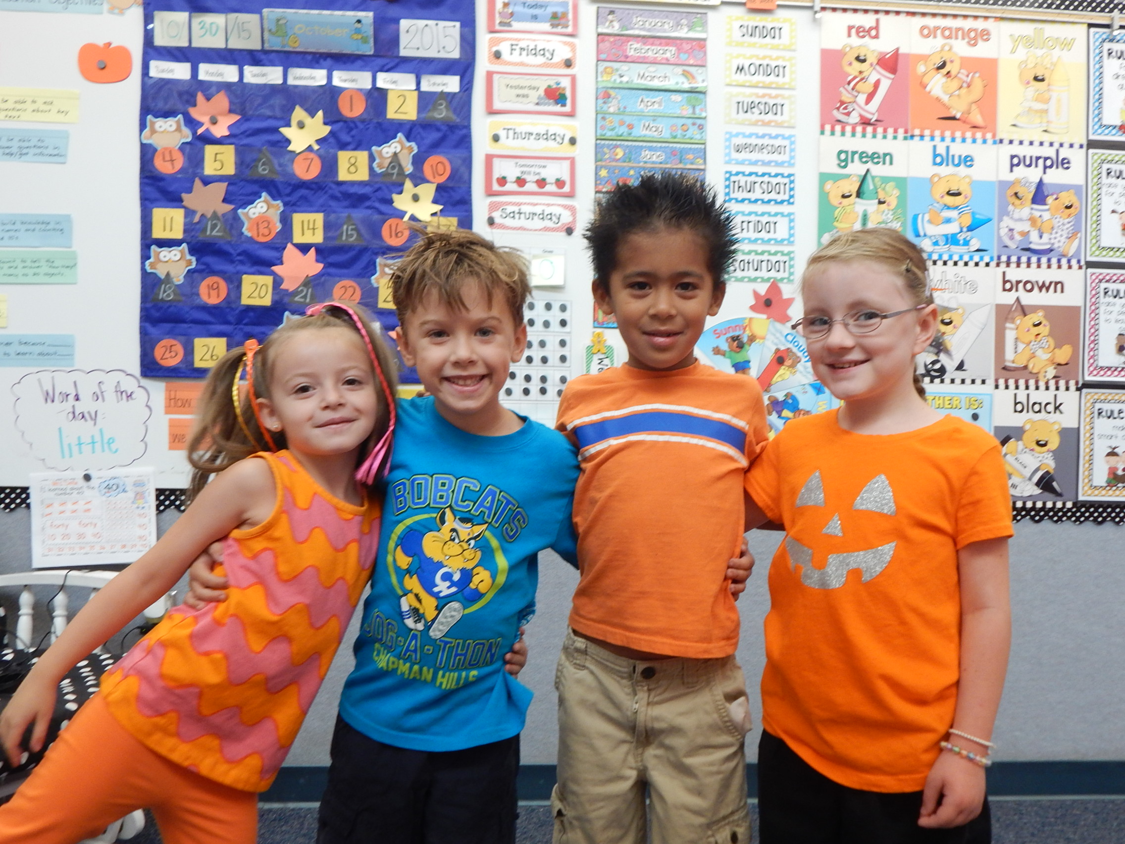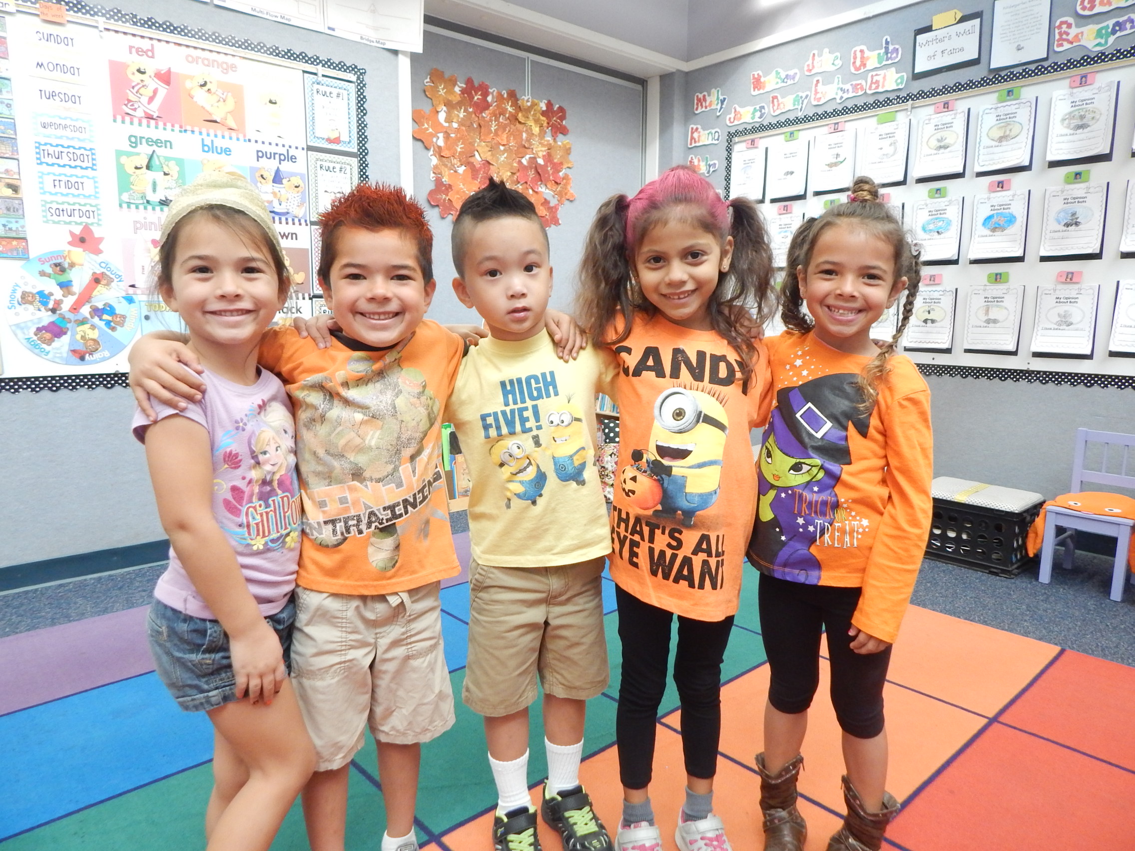 Hello! This Friday we are encouraging the kiddos to dress in orange or Halloween themed clothing. The kiddos are NOT allowed to wear costumes, but we do want them to look somewhat festive for our "Taste of Orange" event. We are also suggesting that the kiddos come to school with crazy hair, so make it fun and exciting. I may come with crazy hair myself!!!