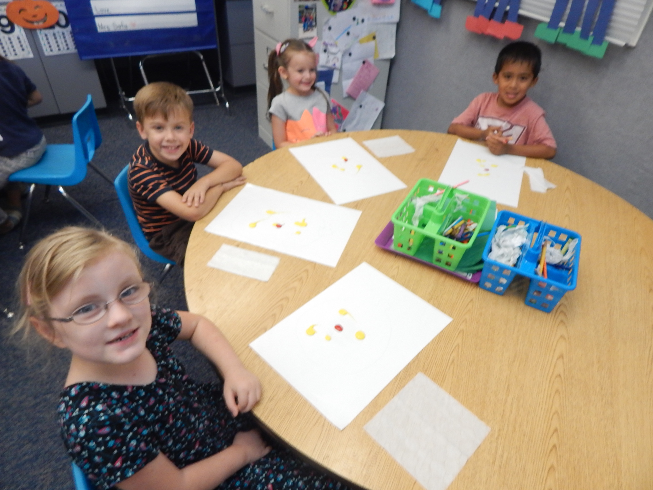 Here are a few pictures of what we did with our buddies today. It was the second group doing the toilet paper art projects. They all turned out really good!
