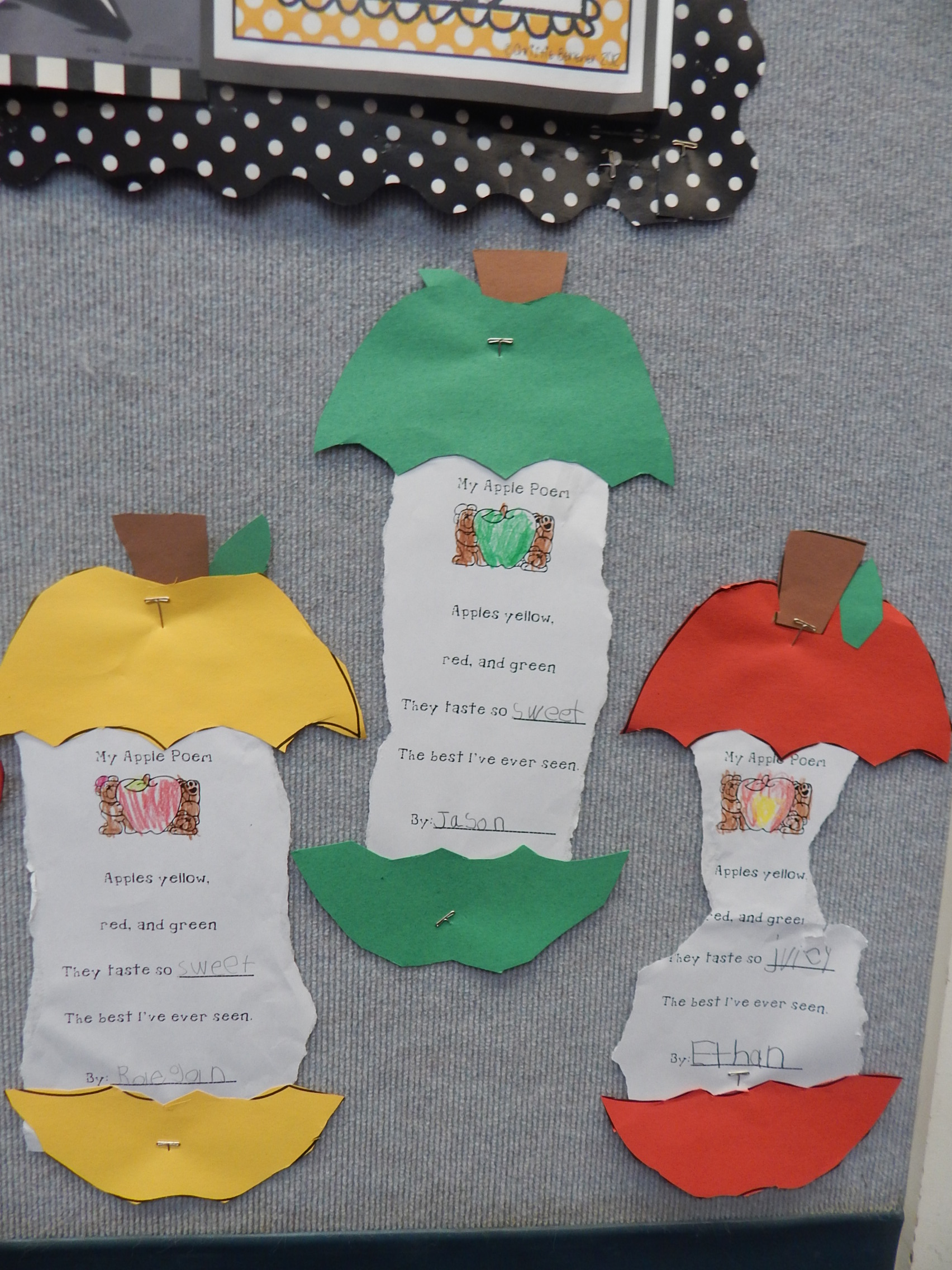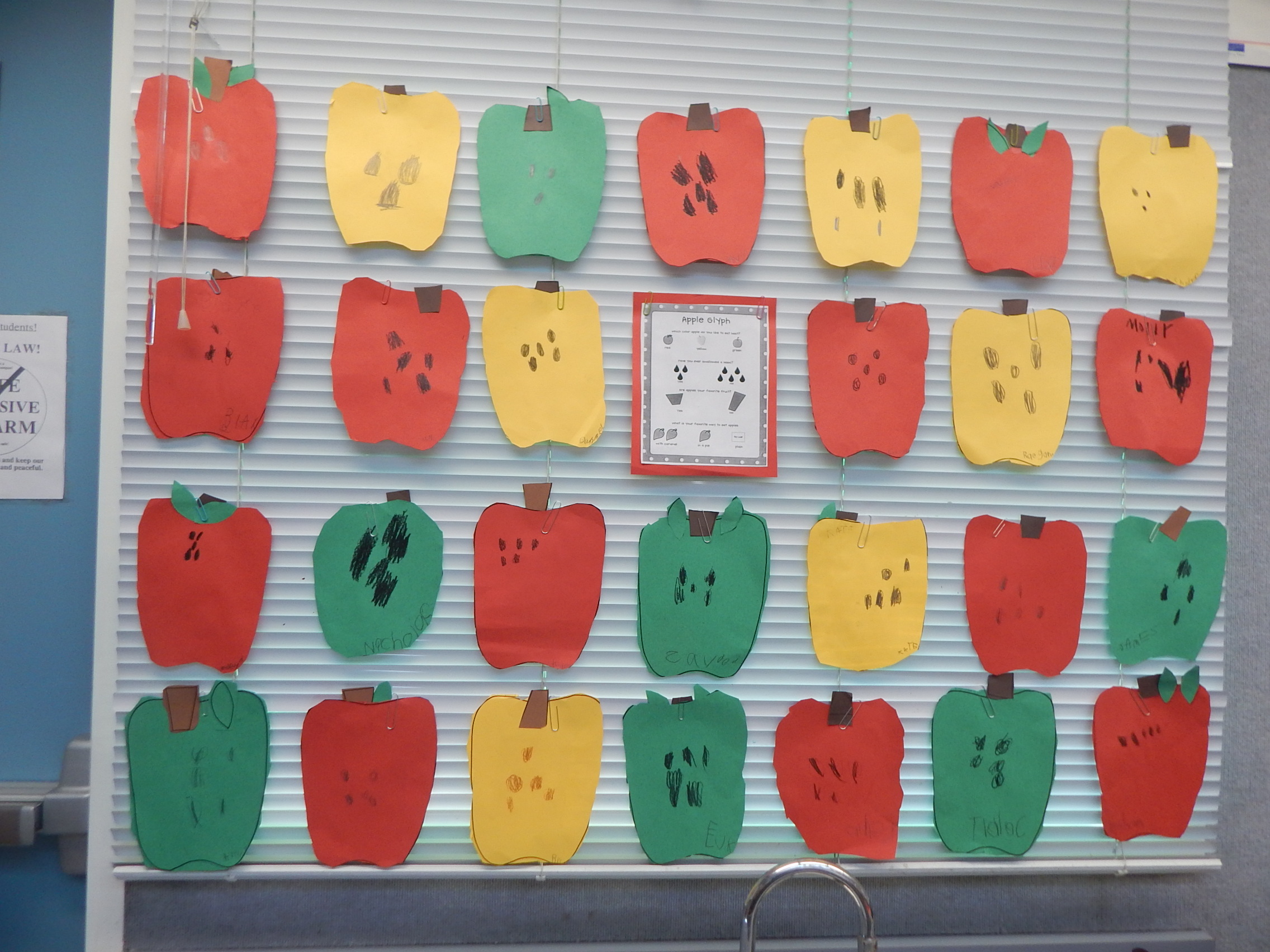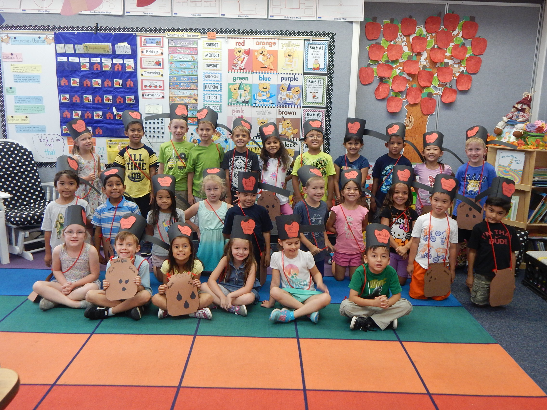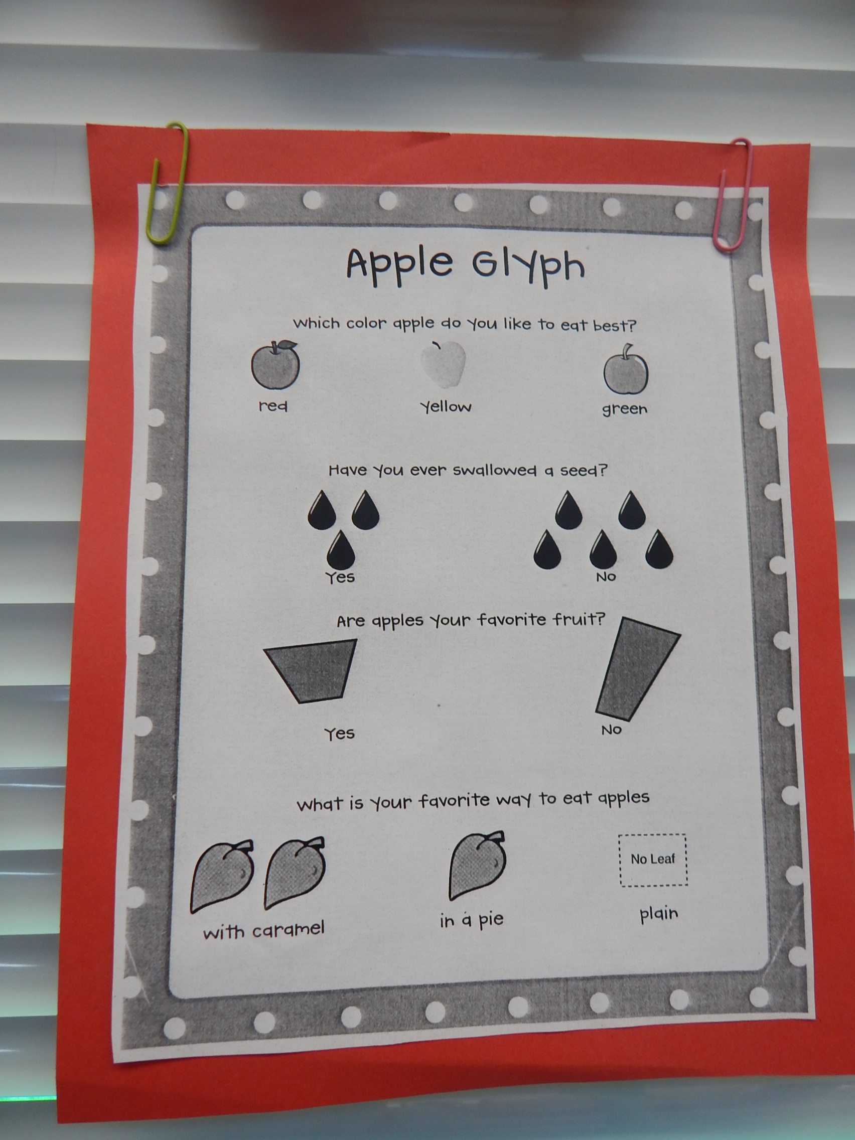 Tomorrow is Johnny Appleseed's birthday, so in appreciation for all he did, we wanted to celebrate and dress up like him! Here are my Kindergarten Appleseeds! We also did a cute apple glyph and a writing about apples. Have a great weekend!!!