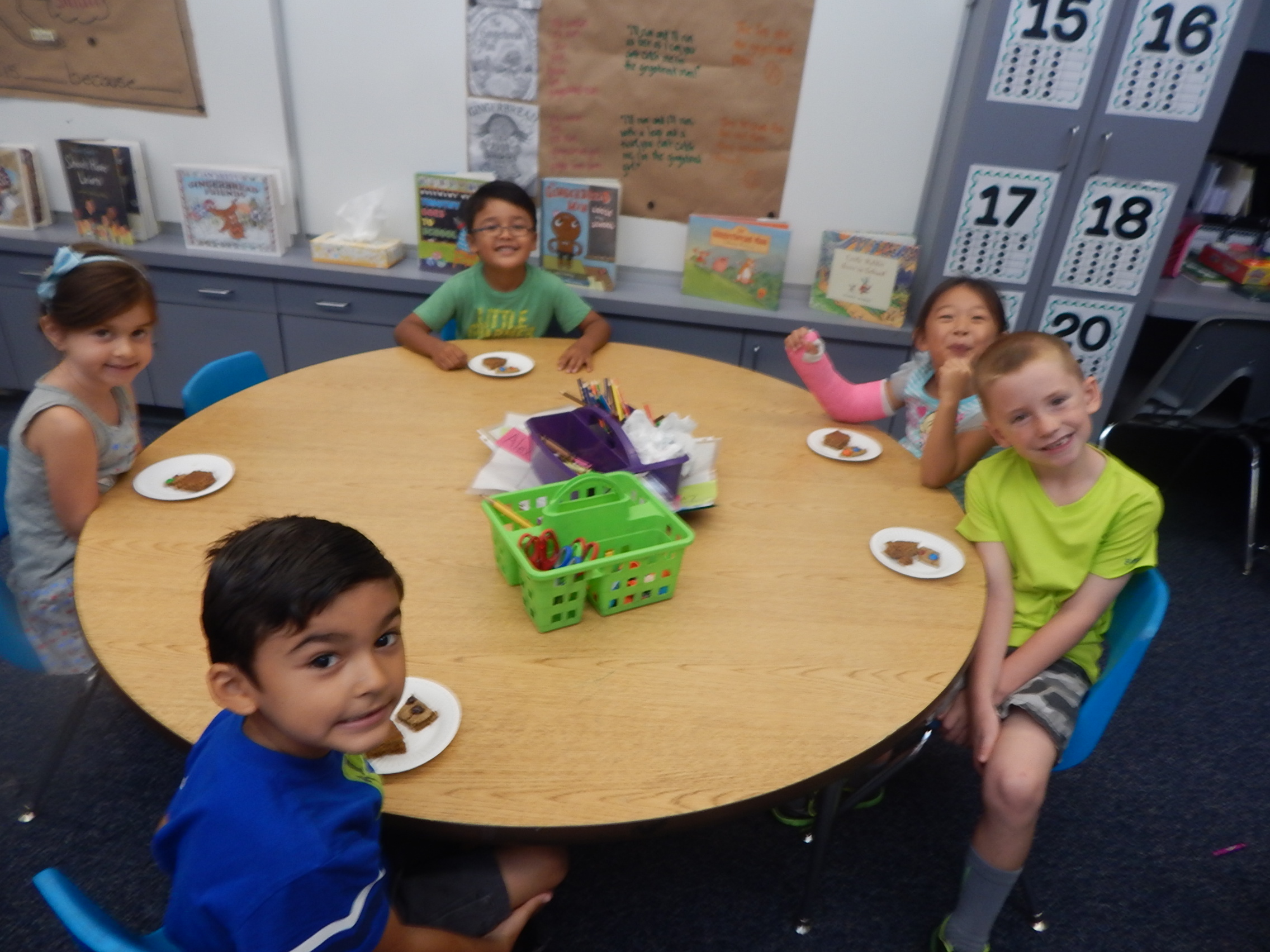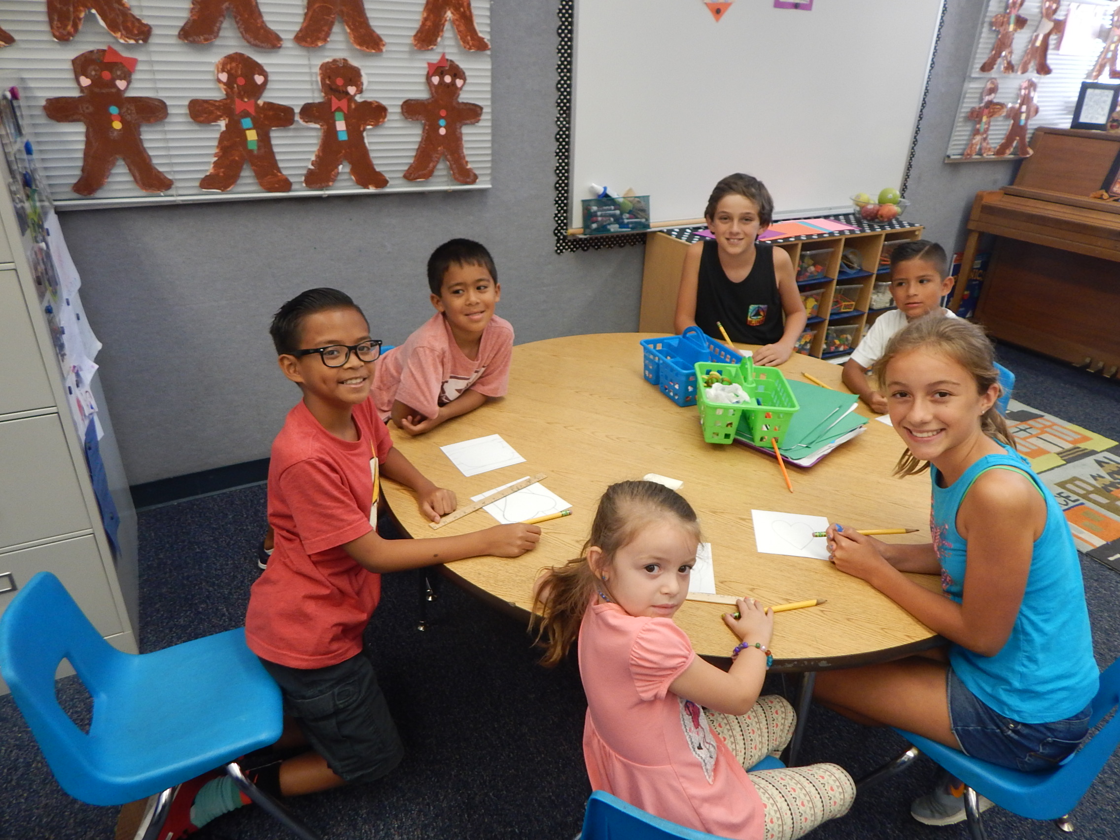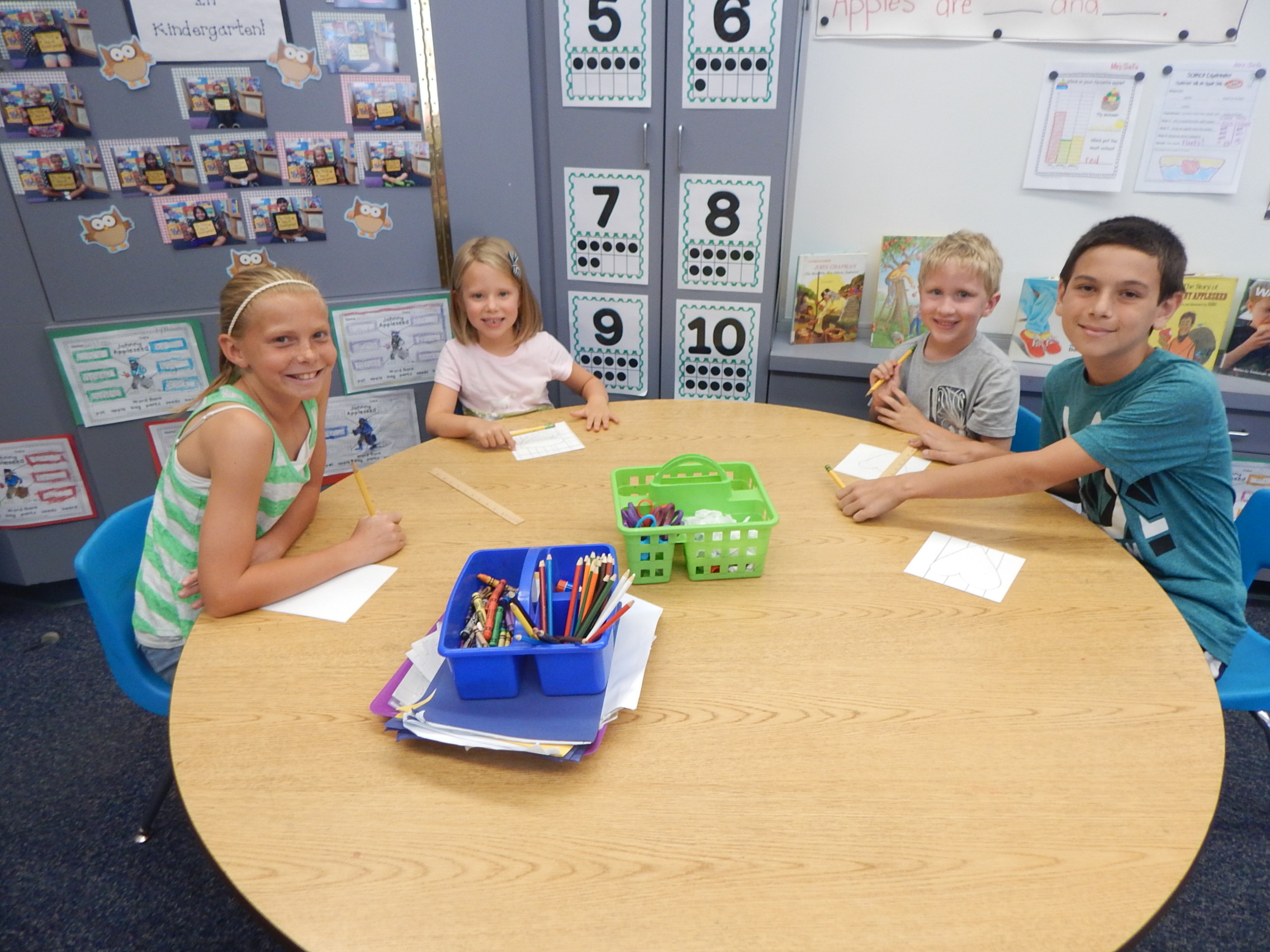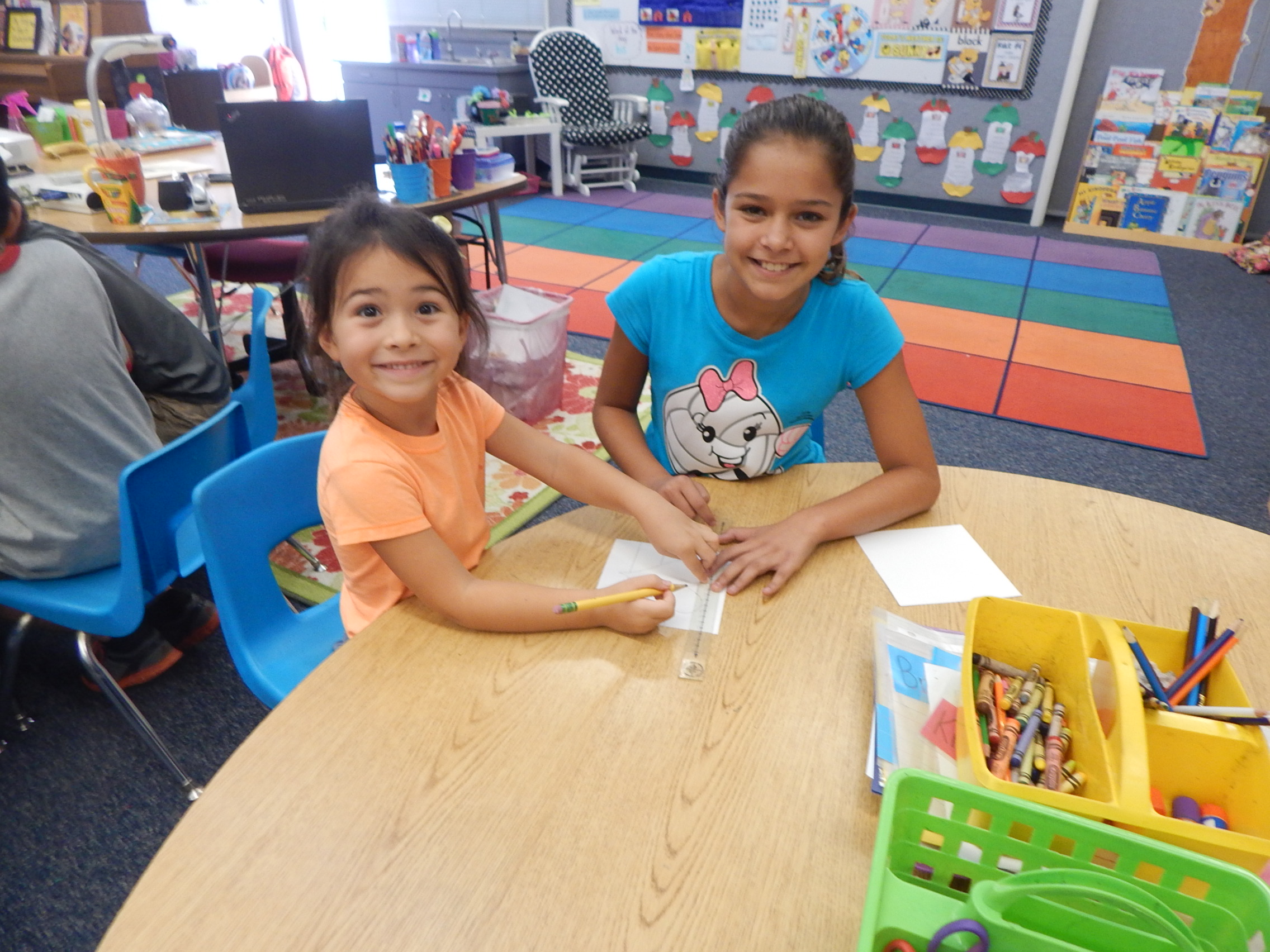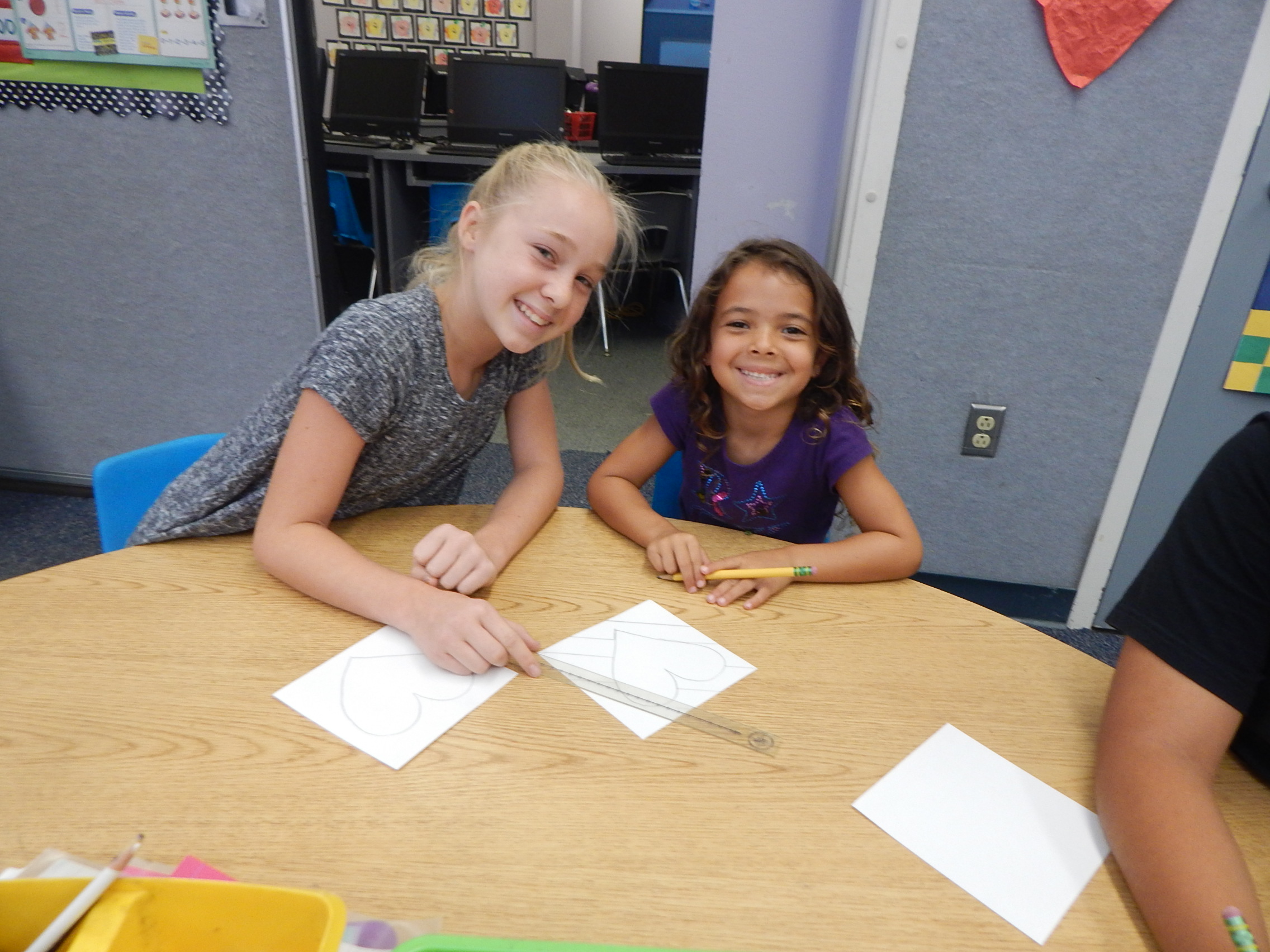 Wednesday was our first day of "Buddies"! Mr. Higgins class and my class will be doing buddies throughout the year where half the group works on an art project in my class, while the other group works on iPads in his class. Then we switch the next visit, so all the kiddos get both activities with their buddies. Here are a few pictures from my group, we did an art project that incorporated some math standards as well!