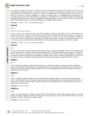 French II is designed to help the students develop language skills of listening, speaking, reading, and writing through the