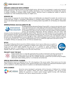 the senior year. Recommended honors courses in the 9th and 10th grades are designed as pre-IB courses, which is preparation