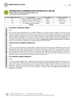 further their exploration of college and careers in the ICT Industry. Exploring Computer Science is UC approved as a “G” Elective.