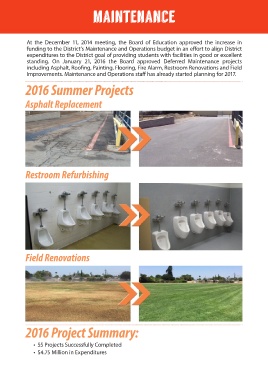 Improvements. Maintenance and Operations staff has already started planning for 2017.