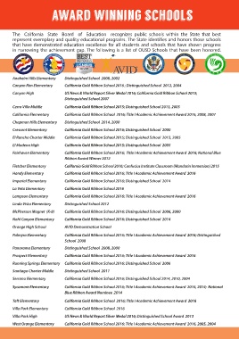 Cerro Villa Middle California Gold Ribbon School 2015; Distinguished School 2013, 2005
