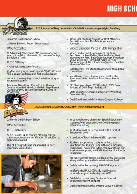• Academic Decathlon: Placed 1st in Orange • CIF Championships: 2015 Football, 2015 Boys’