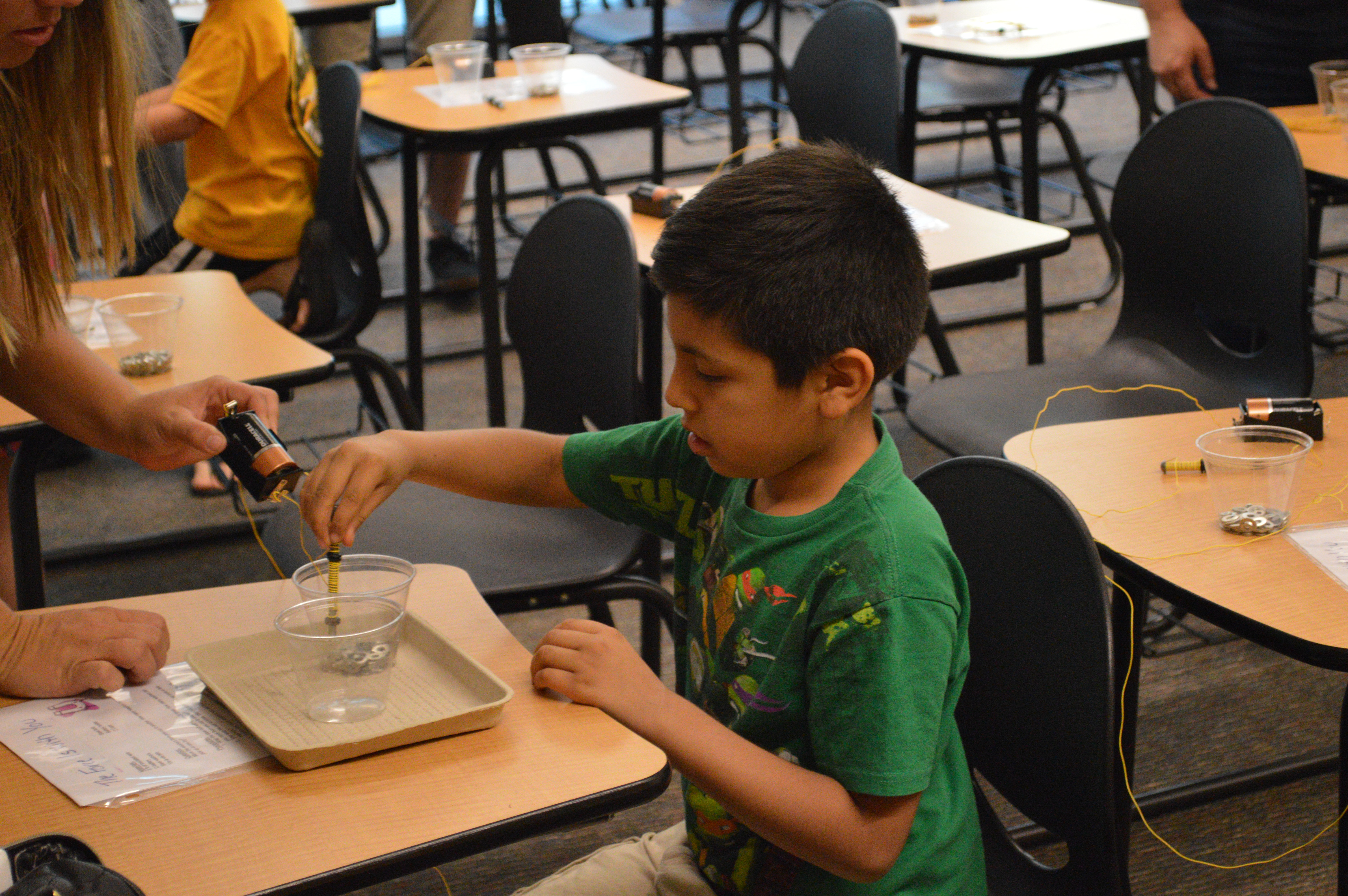Orange, CA – April 3, 2015 – Orange Unified’s tenth annual Community Science Night at Santiago Canyon College (SCC) was a great success. Over 65 teachers from 24 Orange Unified school sites volunteered their time to provide between 2,500 and 3,000 students and parents with an evening of hands-on, inquiry-centered science and STEM-based activities.