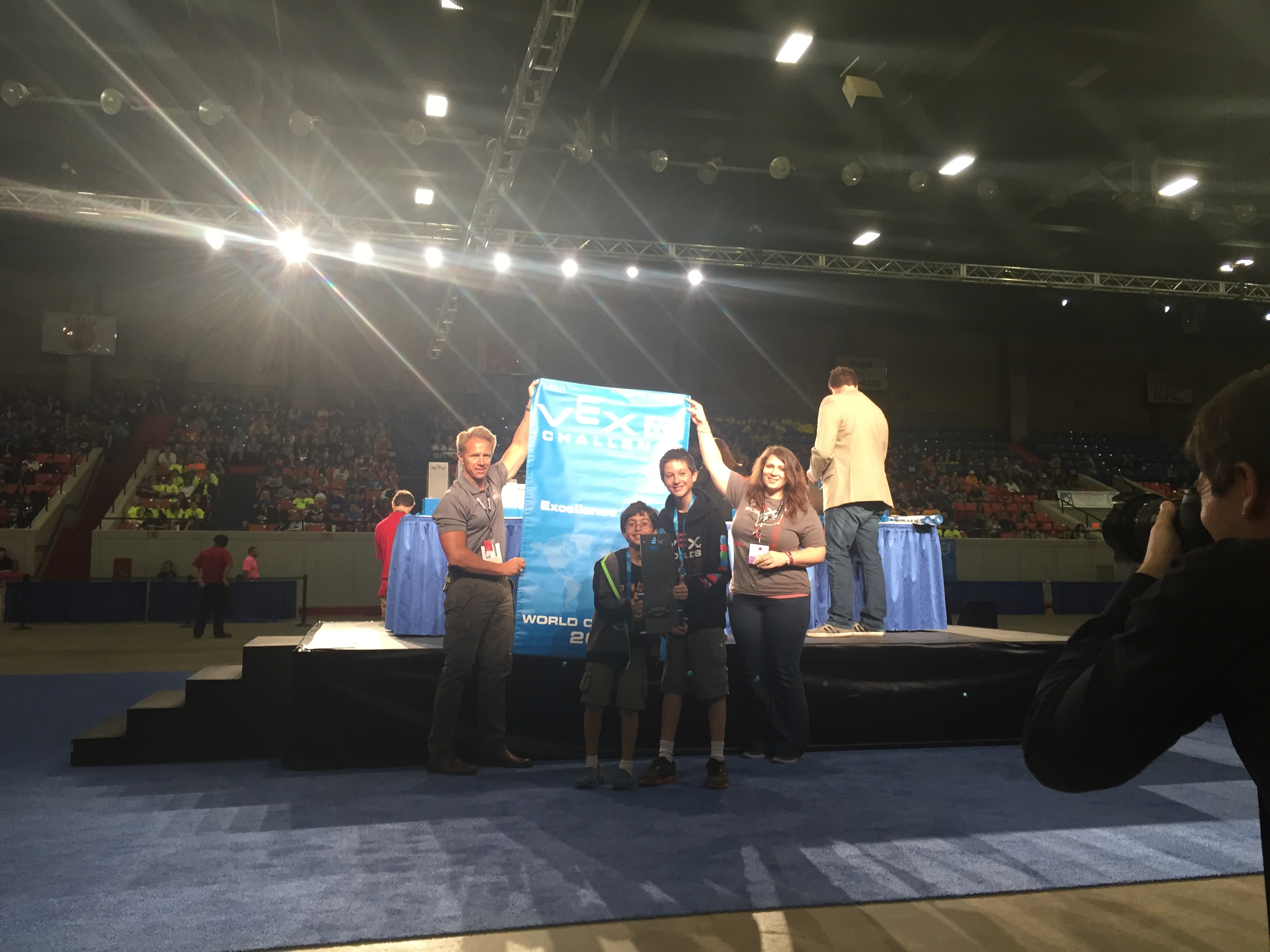 Team B received the highest honor at VEX Worlds - the Excellence Award. This accolade is given to one team in each of the five program divisions that exemplifies overall excellence in building a well-rounded VEX robotics program, from their STEM (science, technology, engineering, and mathematics) Project to high scores in programming and skills. They also placed third in the Teamwork Challenge.