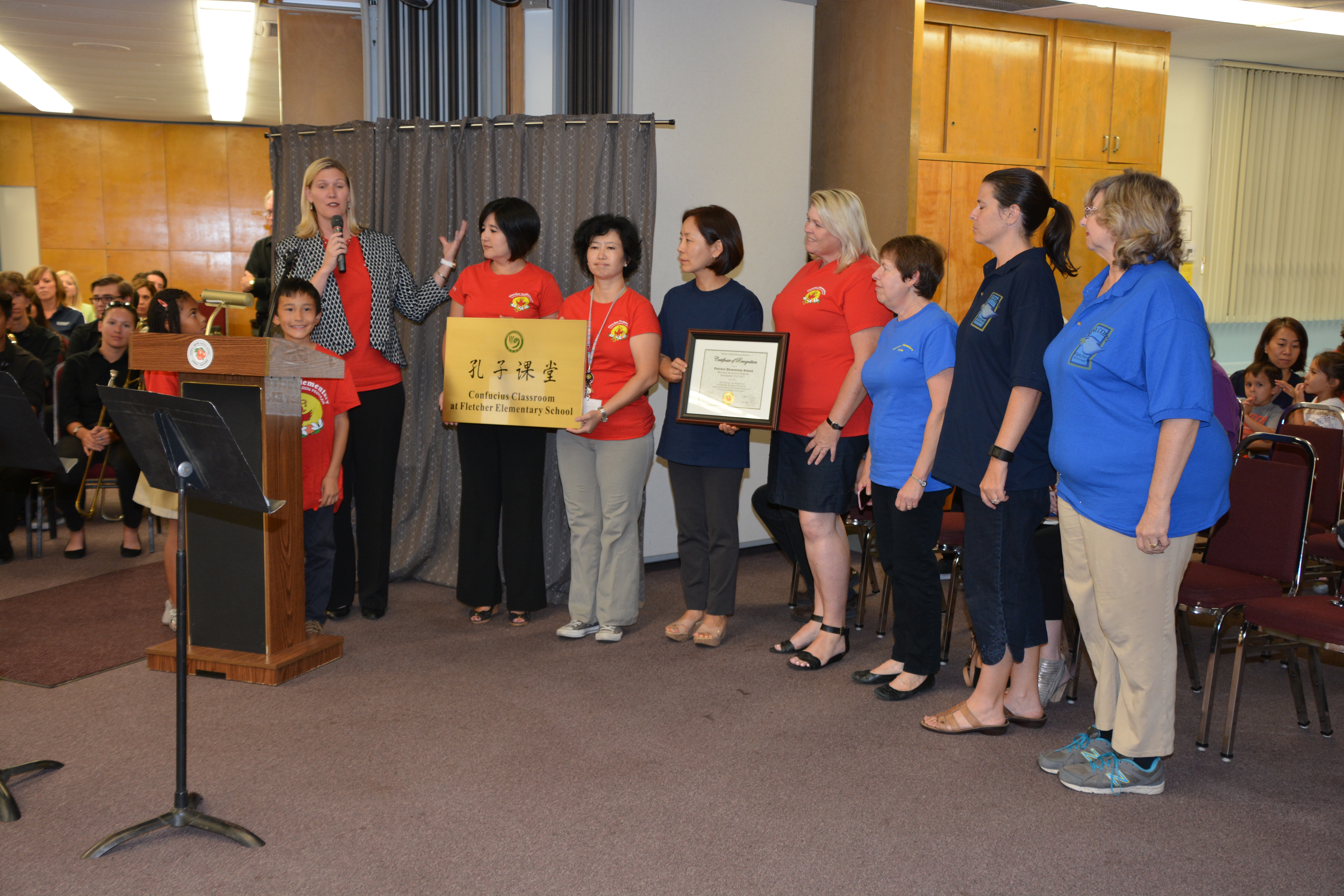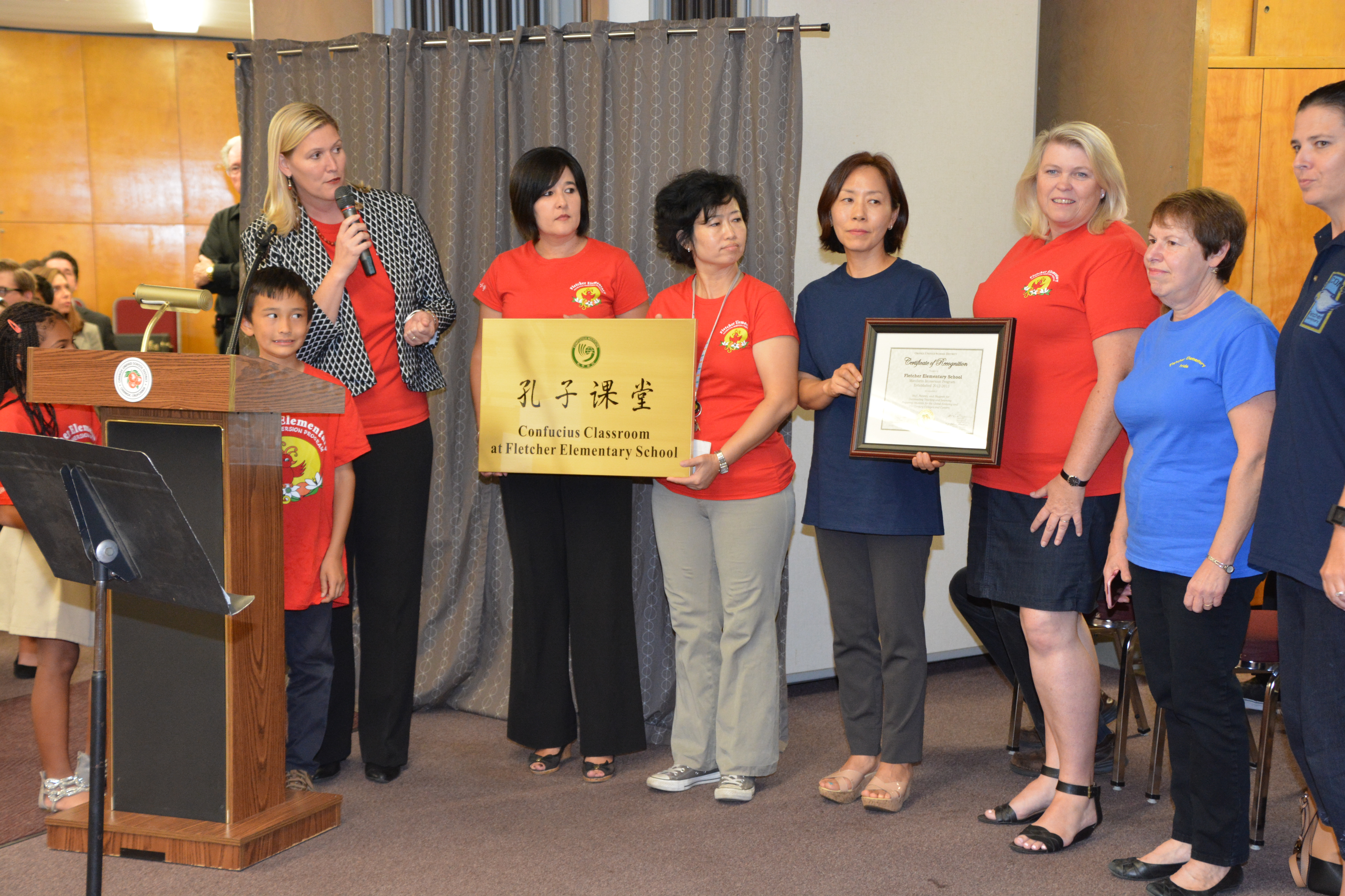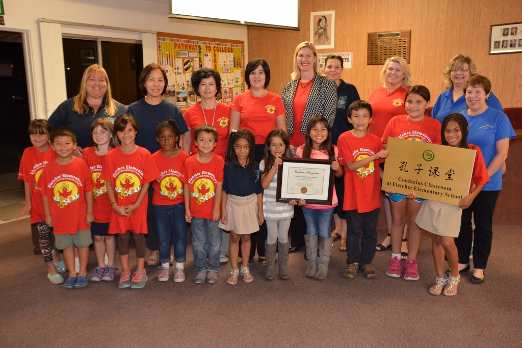 ORANGE, CALIF. - October 16, 2015 - Fletcher Elementary School’s Mandarin Dual Language Immersion Program was honored at the October 15, 2015 board meeting for being formally recognized as an official Confucius Institute Classroom. In collaboration with San Diego State University (SDSU), this academic partnership promotes the development of Chinese language education and assists Fletcher Elementary teachers with the development of instructional resources.