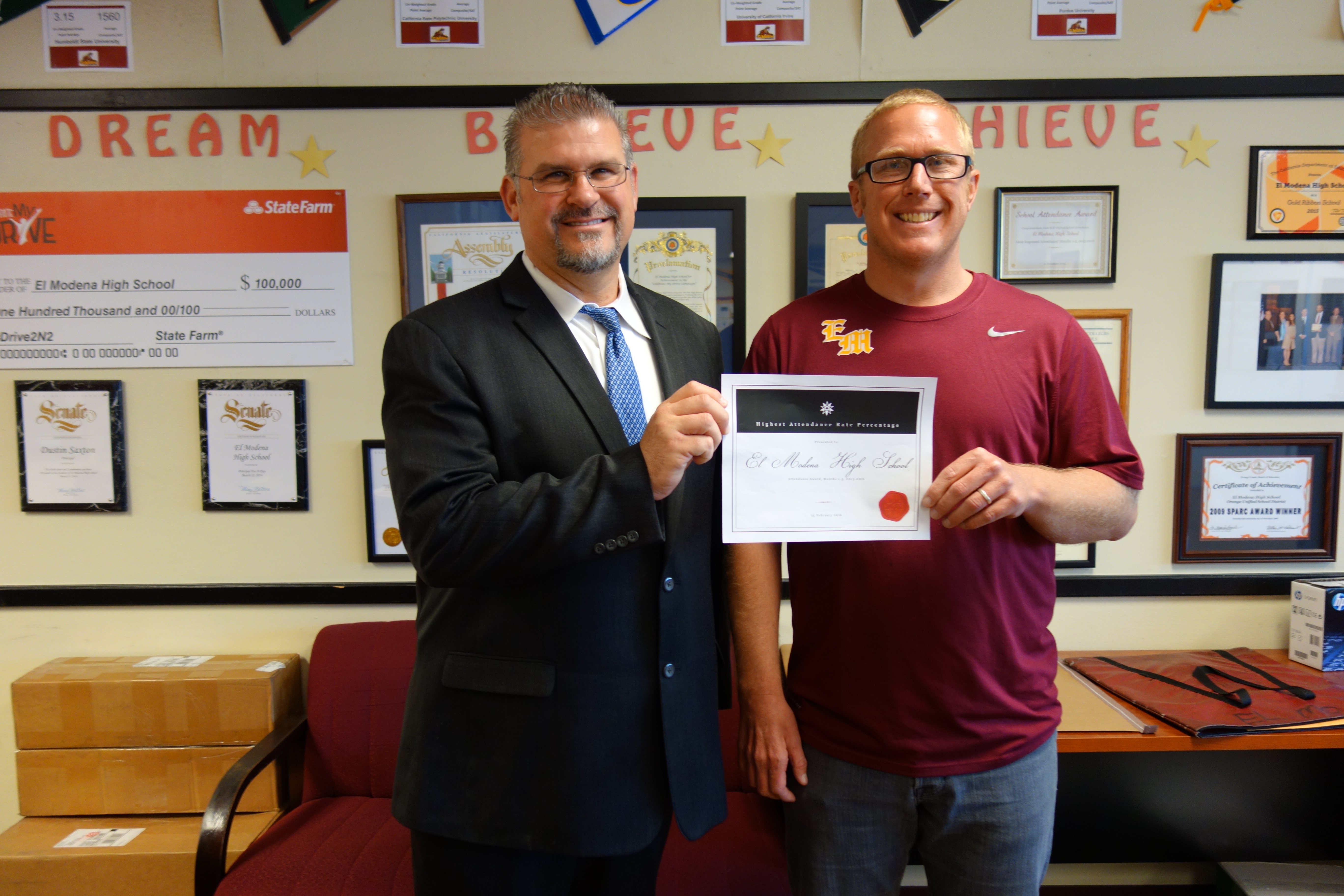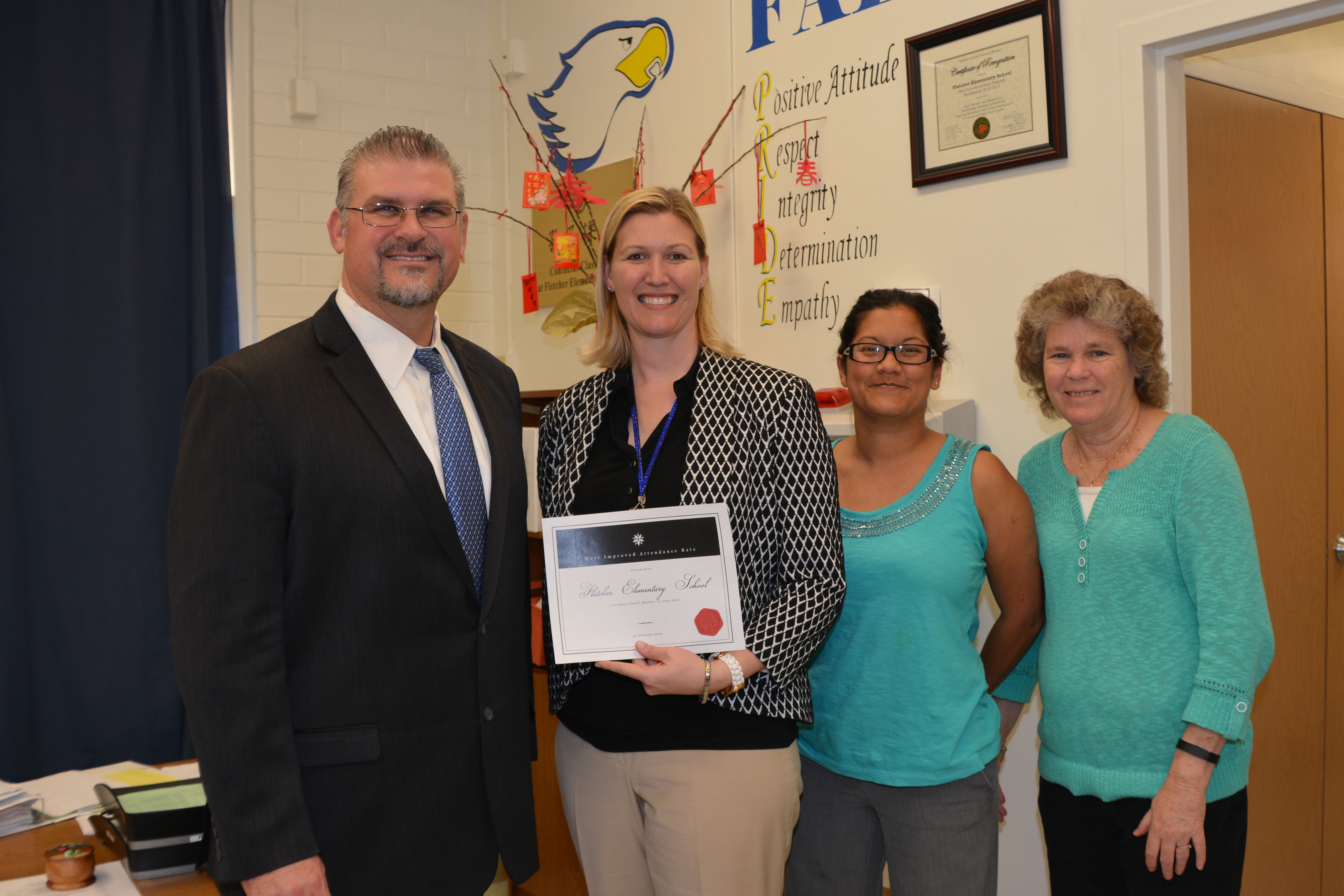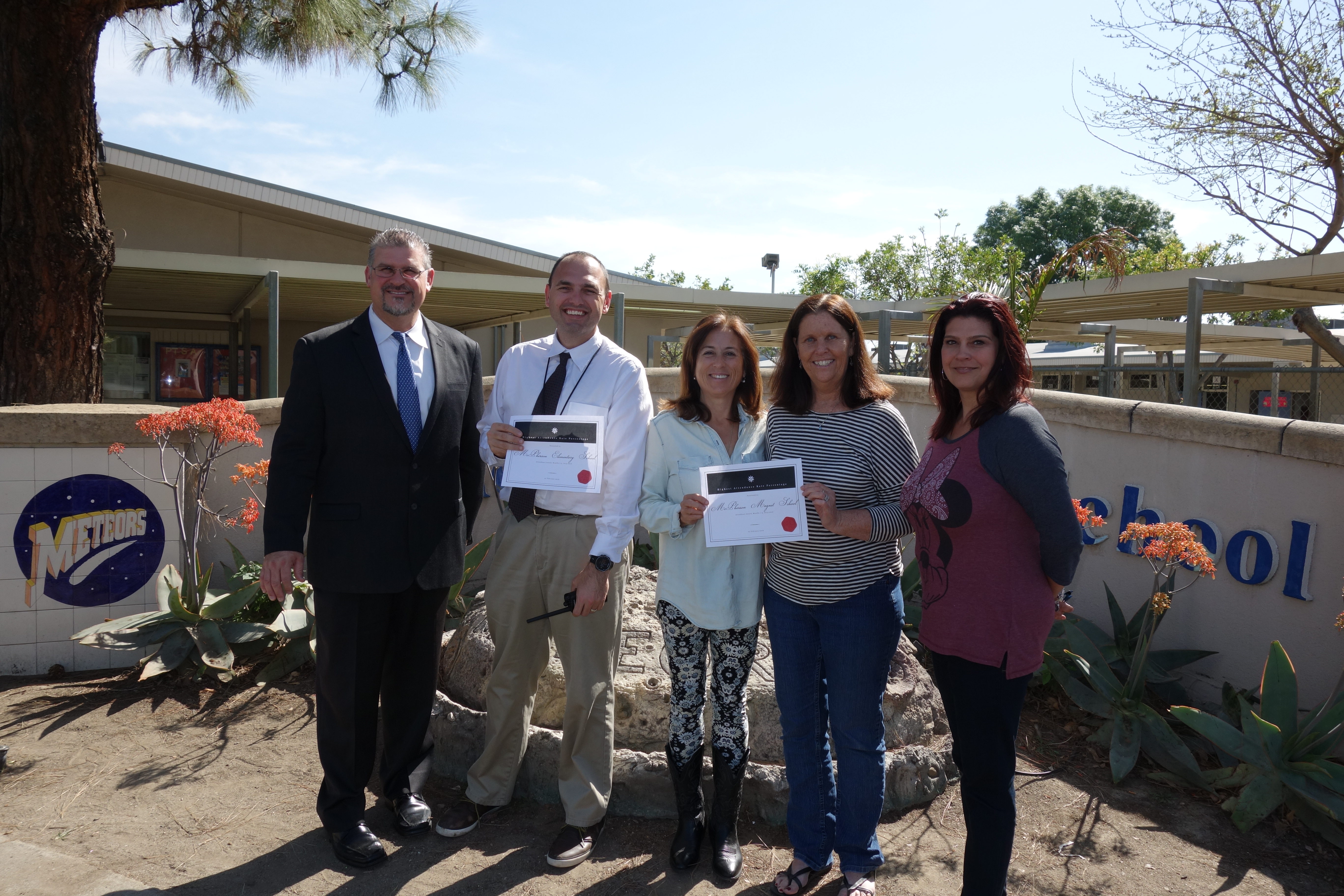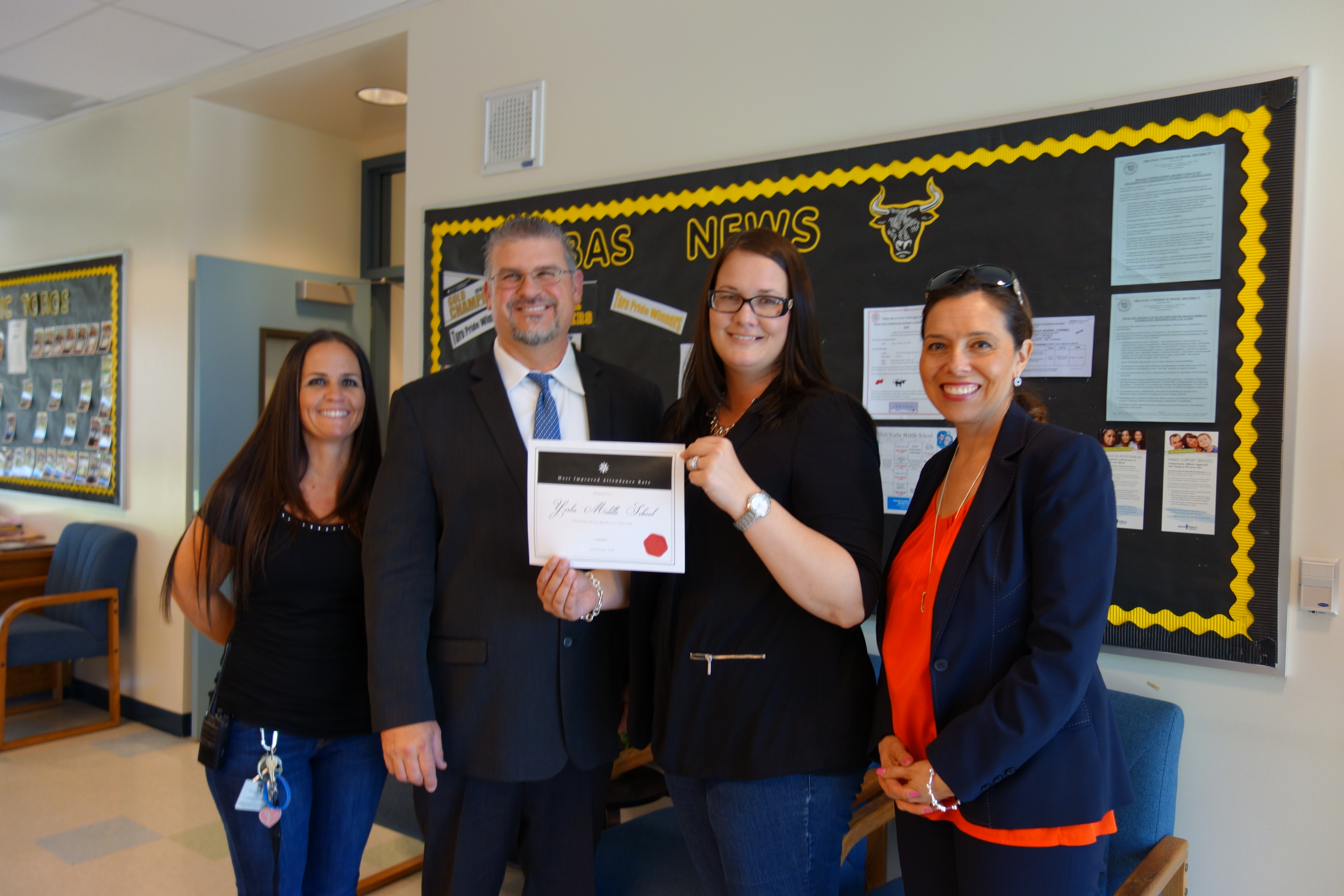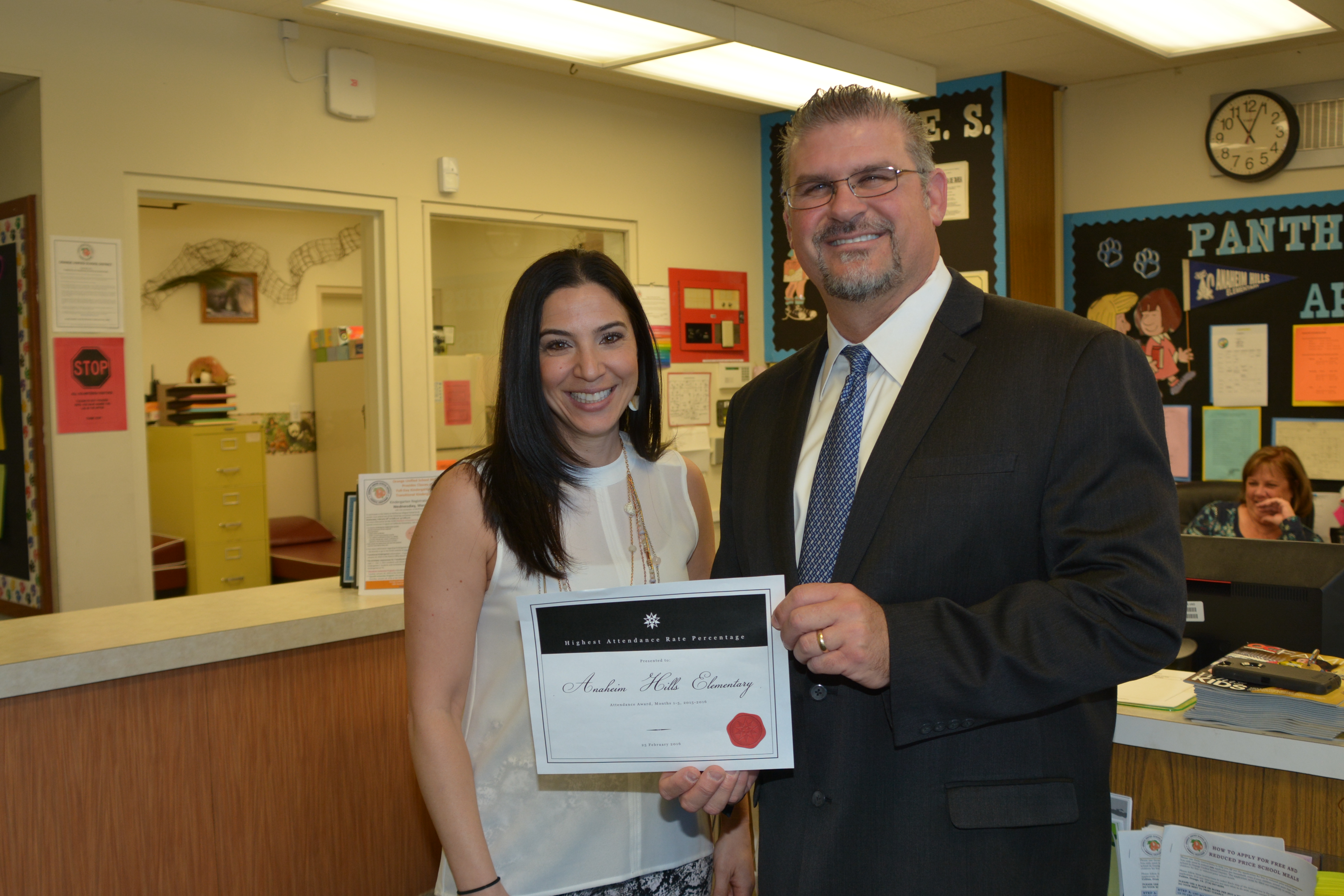 Orange, Calif. - March 1, 2016 - Orange Unified School District continues to strive for high overall student attendance rates and school connectedness. This month, 19 schools were recognized in two attendance categories for the elementary, middle and high school levels: 1) “Most Improved” overall student attendance rates during the first half of this school year as compared to last year’s attendance rates and, 2) “Highest Overall” attendance rate, the first half of the 2015-2016 school year.