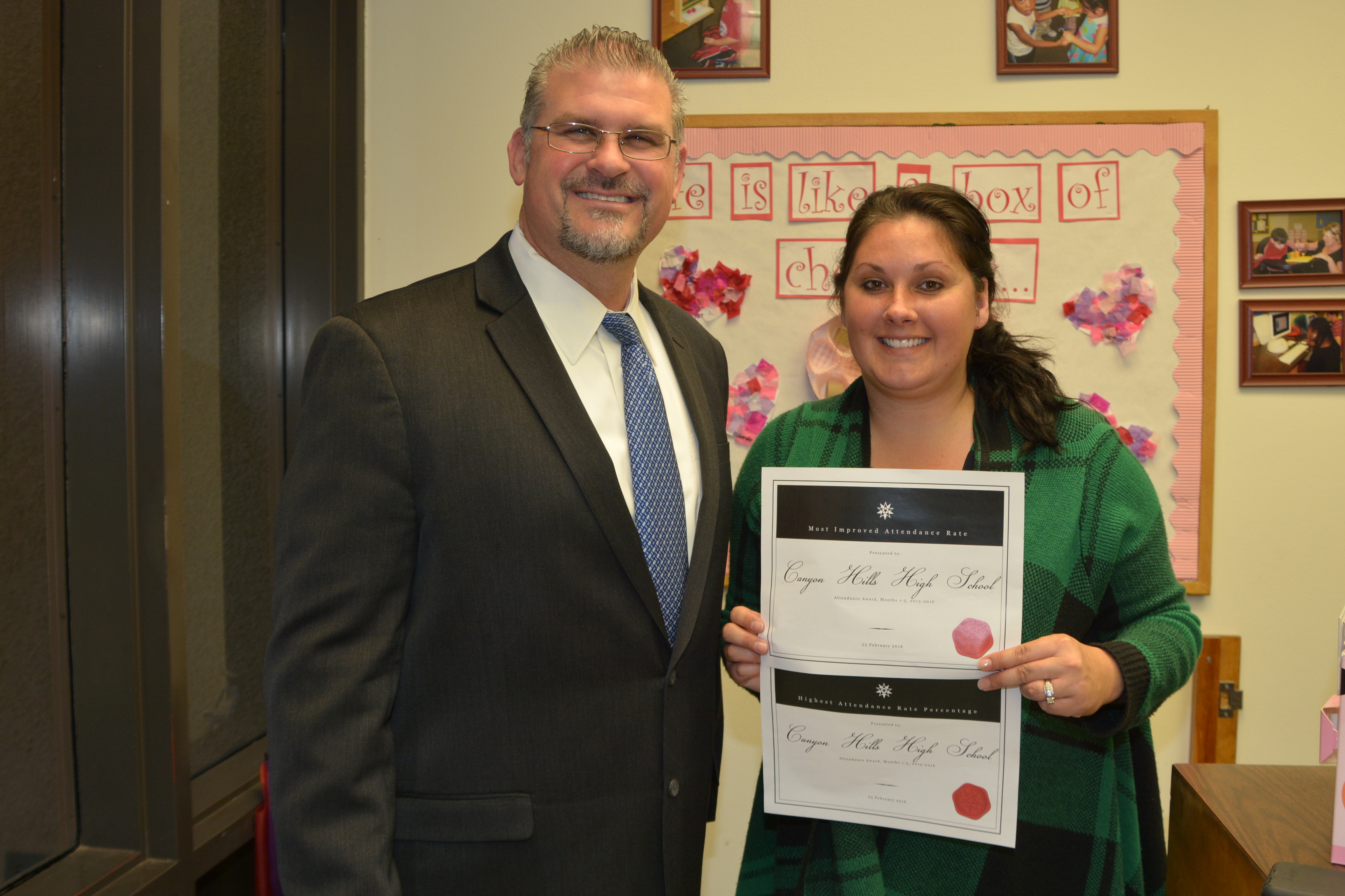 Each was presented with an Attendance Achievement Award certificate by Student and Community Services Administrative Director Ken Miller, Ed. D.