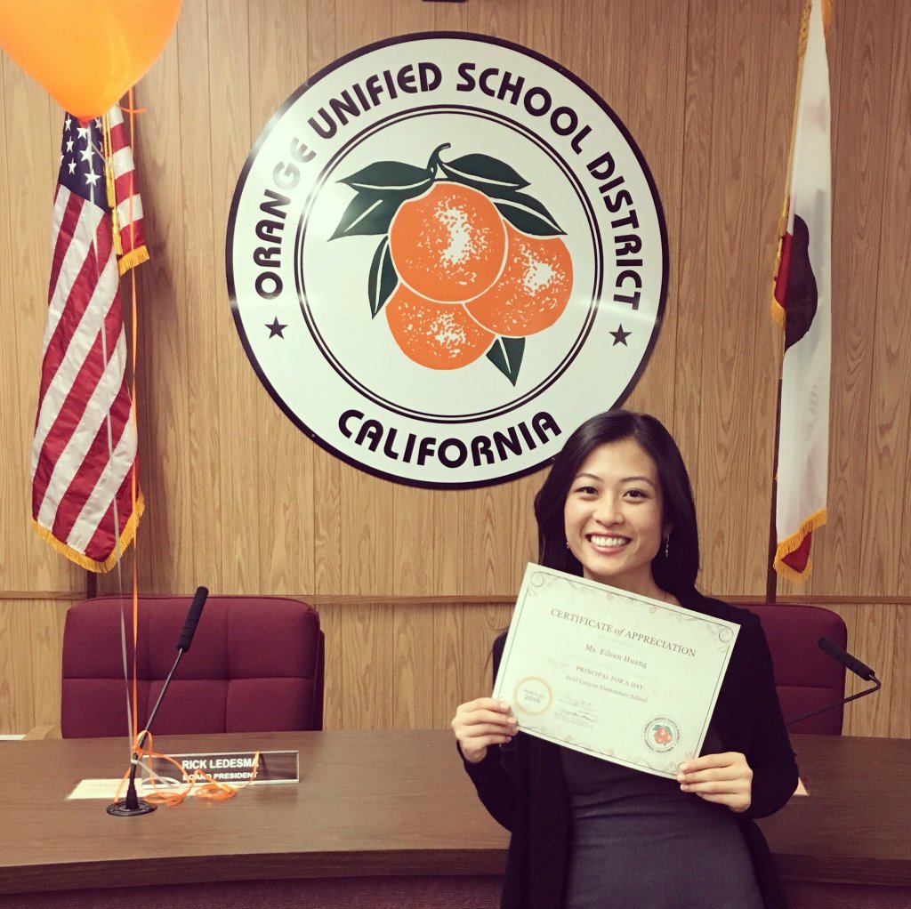 ORANGE, Calif. – March 25, 2016 – The Orange Unified School District celebrated Principal for a Day throughout its campuses on Wednesday, March 23, 2016. The event partners a business leader or community member with a school principal, giving the participant a glimpse of the daily responsibilities it takes to run a school. The purpose of the program is to foster relationships within the community and to share the outstanding work of OUSD teachers, students, and staff.